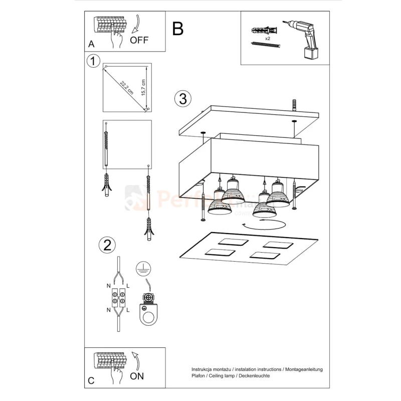 - Typ źródła światła: żarówka LED (brak w komplecie)