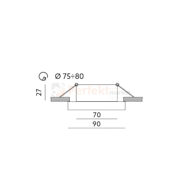 Oprawa wyposażona została w stalowe uchwyty umożliwiające jej pewny montaż w płytach KG. W zestawie znajduje się również pierścień (sprężynka) blokująca żarówkę w oprawie. Zalecany otwór montażowy 75-80 mm
