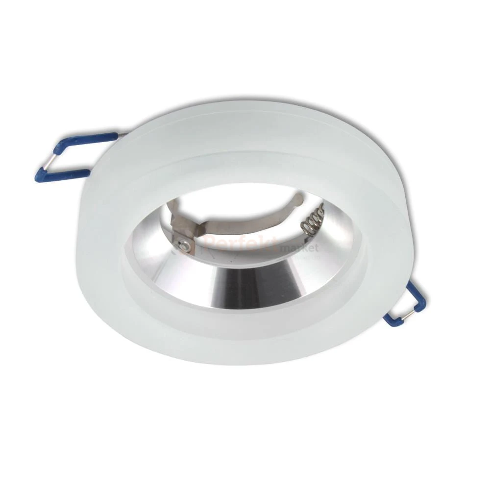 Oprawa halogenowa szklana okrągła wysoka 2cm biała 3008. Gniazdo GU10 w komplecie.