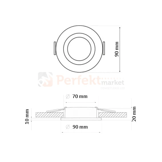 Zalecany otwór montażowy 60mm-70mm.