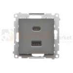 Ładowarka USB podwójna grafitowy mat 3,1A Prąd ład.:3,1A Simon 55 TEC2CA.01/116