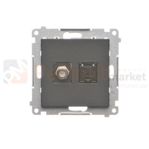 Gniazdo antenowe typu „F” + komputerowe RJ45 kat.6 czarny mat Simon 55 TASFRJ45.01/149