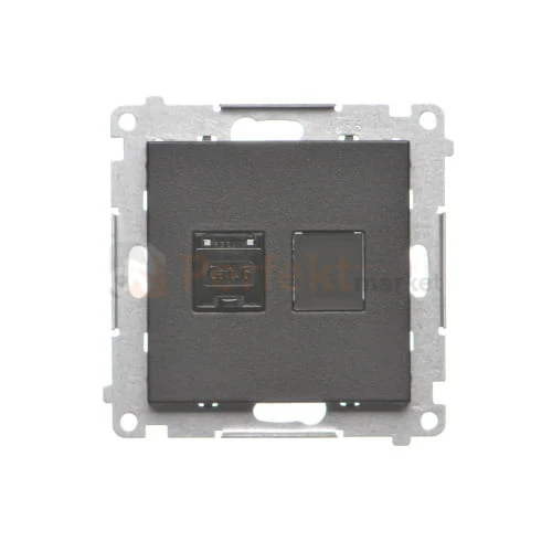 Gniazdo komputerowe pojedyncze RJ45 kategoria 6, z przesłoną przeciwkurzową czarny mat Simon 55 T61.01/149