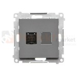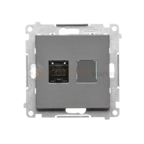 Gniazdo komputerowe pojedyncze RJ45 kategoria 6, z przesłoną przeciwkurzową grafitowy mat Simon 55 T61.01/116