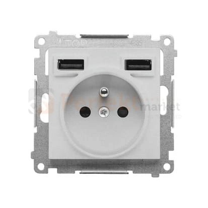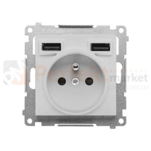 Gniazdo z ładowarką USB aluminium mat 16A Prąd ład.:2,1A Simon 55 TGZ1ZUSB2AA.01/143