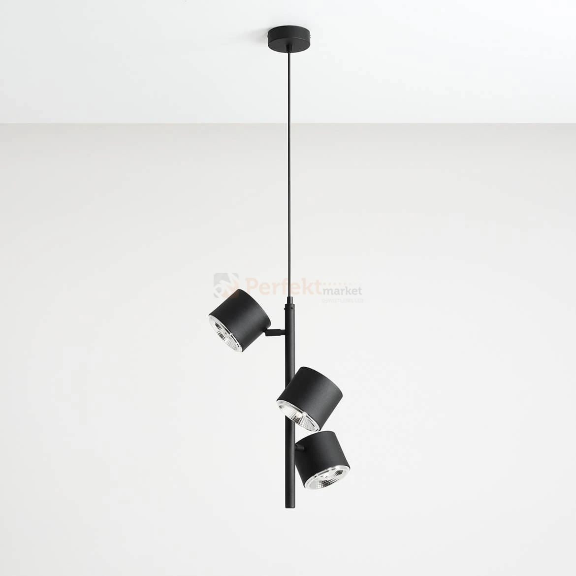 Ciekawa propozycja lampy wiszącej BOT to połączenie 3 regulowanych spotów zawieszonych pionowo czarnym pręcie. Oryginalna i bardzo funkcjonalna lampa dzięki możliwości regulacji kąta świecenia na przegubach.
