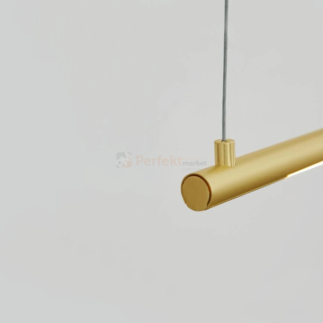Nowoczesna lampa wisząca LED BUGA LE41356 to podłużna listwa świetlna w złotym kolorze zwieszona na delikatnych linkach. Jej prosty kształt i forma idealnie komponuje się w wnętrzach nowoczesnych, skandynawskich, glamour czy modern.