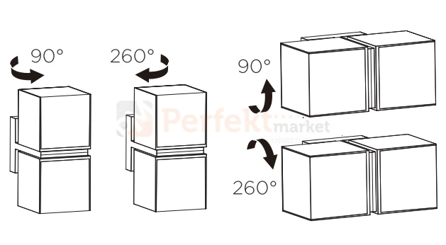 Nowoczesny i wszechstronny kinkiet odpowiedni do montażu pionowego i poziomego. 2 głowice światła można obracać o ponad 260 ° w górę i w dół. Kinkiet dostępny ze zintegrowanym modułem LED o barwie ciepłej oraz kolorze szarym.