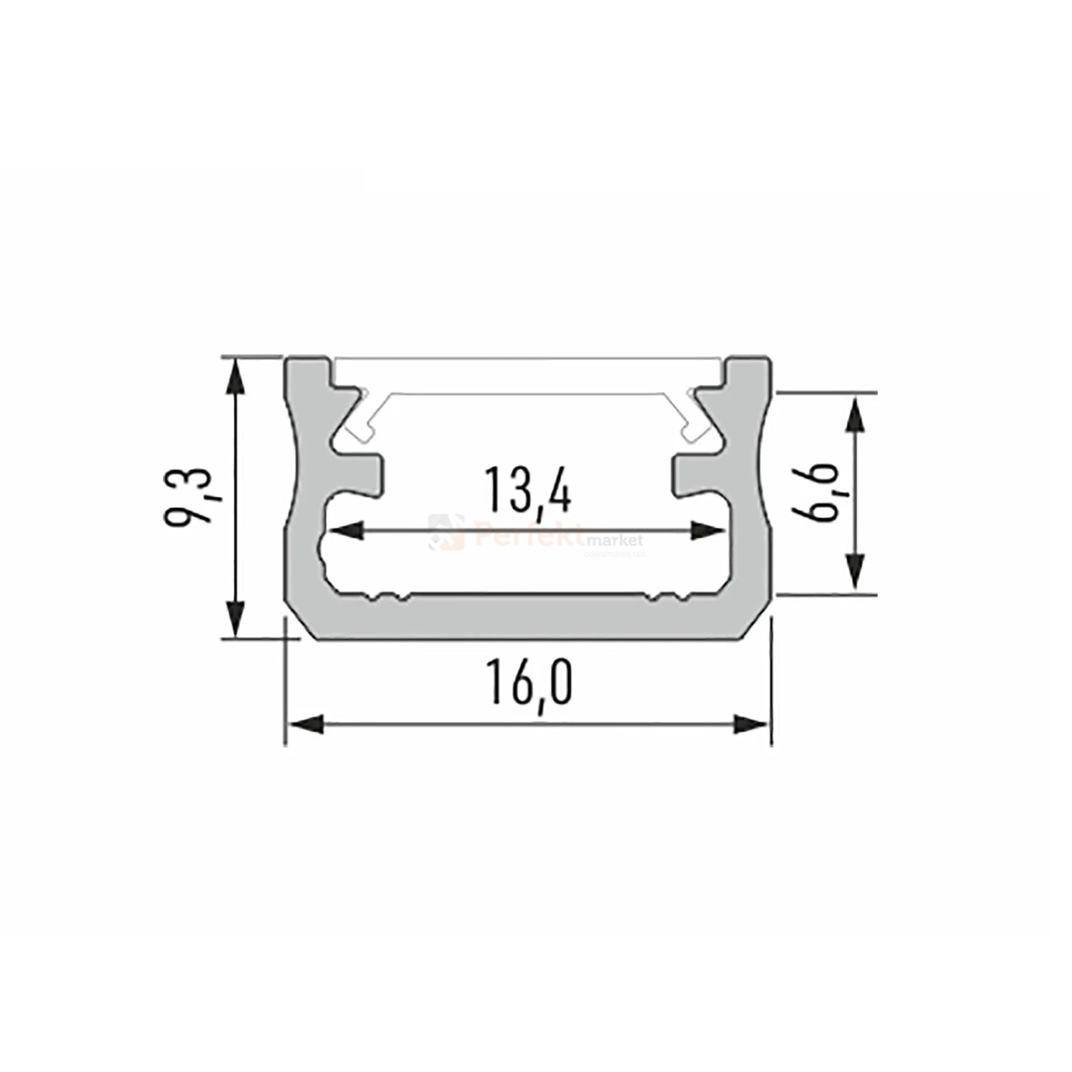 Profil wykonano z grubych ścianek aluminiowych, co zapewnia lepsze odprowadzanie ciepła niż w tańszych profilach, przekładając się na dłuższą żywotność zamontowanej taśmy LED. Wymiary profilu to 16 mm szerokości i 9,3 mm wysokości, co czyni go kompaktowym rozwiązaniem do zabudowy nawierzchniowej.