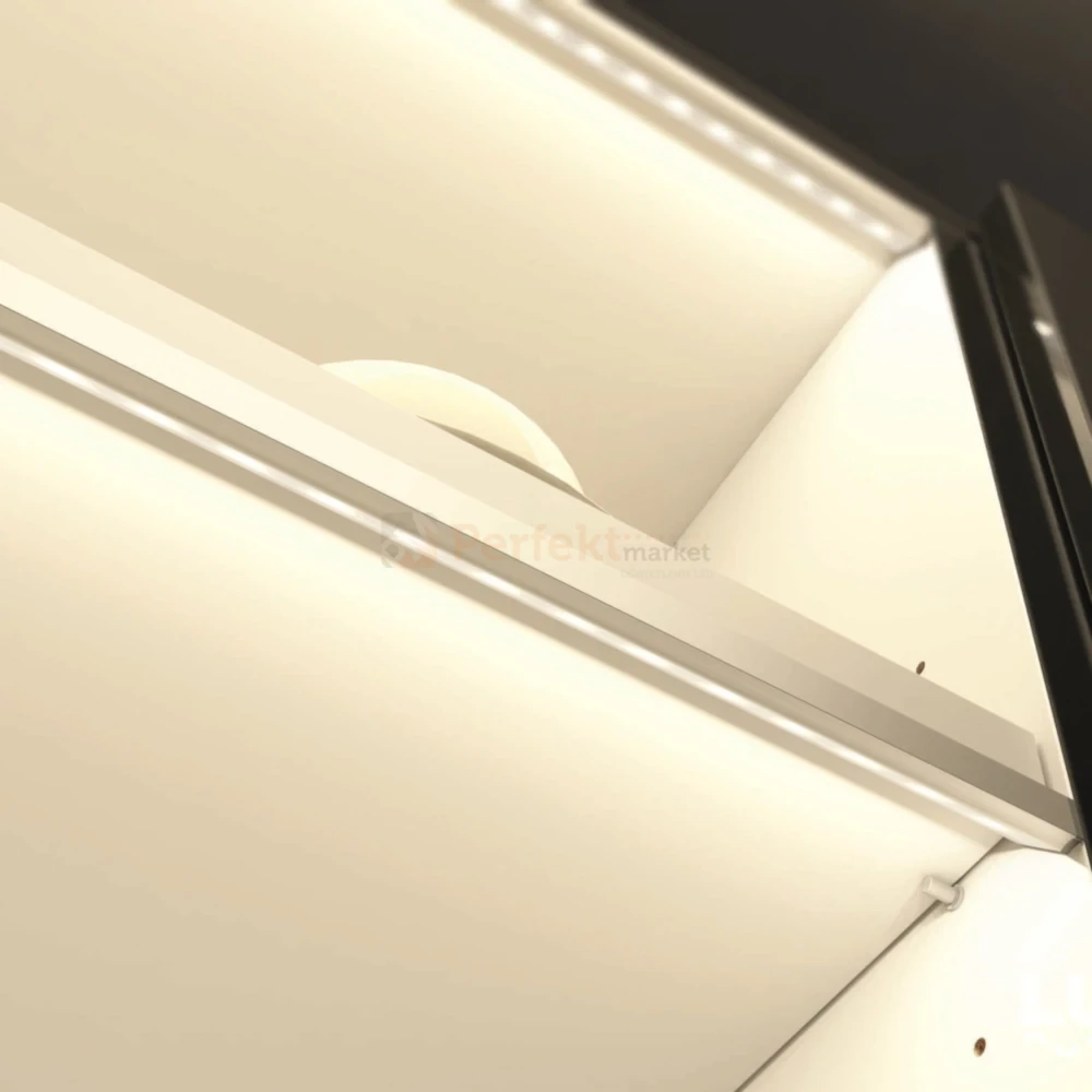 Narożna konstrukcja oraz ustawienie taśmy pod kątem 45° pozwalają efektownie ukierunkować światło i subtelnie podkreślić linie wnętrza.