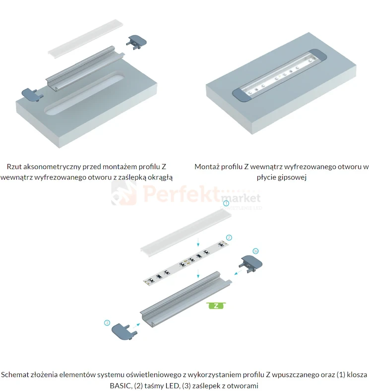 Profil typ Z to niskoprofilowy system aluminiowy przeznaczony do montażu taśm LED w przestrzeniach o ograniczonej głębokości montażowej. Jego wysokość została zoptymalizowana, aby umożliwić instalację bez konieczności głębokiego frezowania, co ma kluczowe znaczenie w przypadku elementów meblowych i zabudów o ograniczonej grubości materiału.