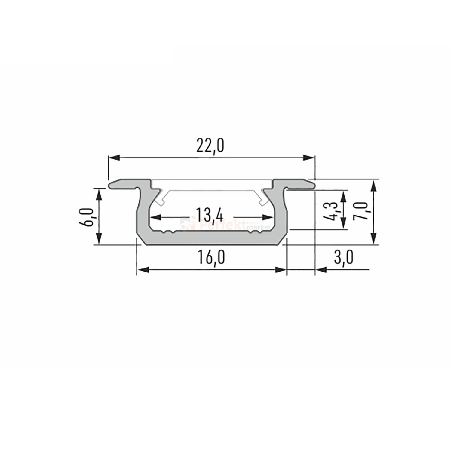 Profil aluminiowy do taśm LED, anodowany o długości 1 mb. Typ Z wpuszczany bez przesłony. Kolor biały