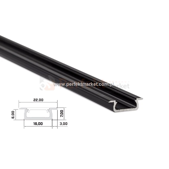 Profil aluminiowy do taśm LED, anodowany o długości 2 mb. Typ Z wpuszczany bez przesłony. Kolor czarny