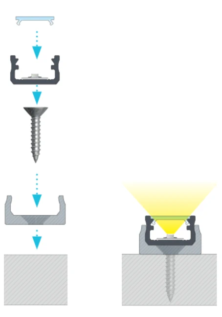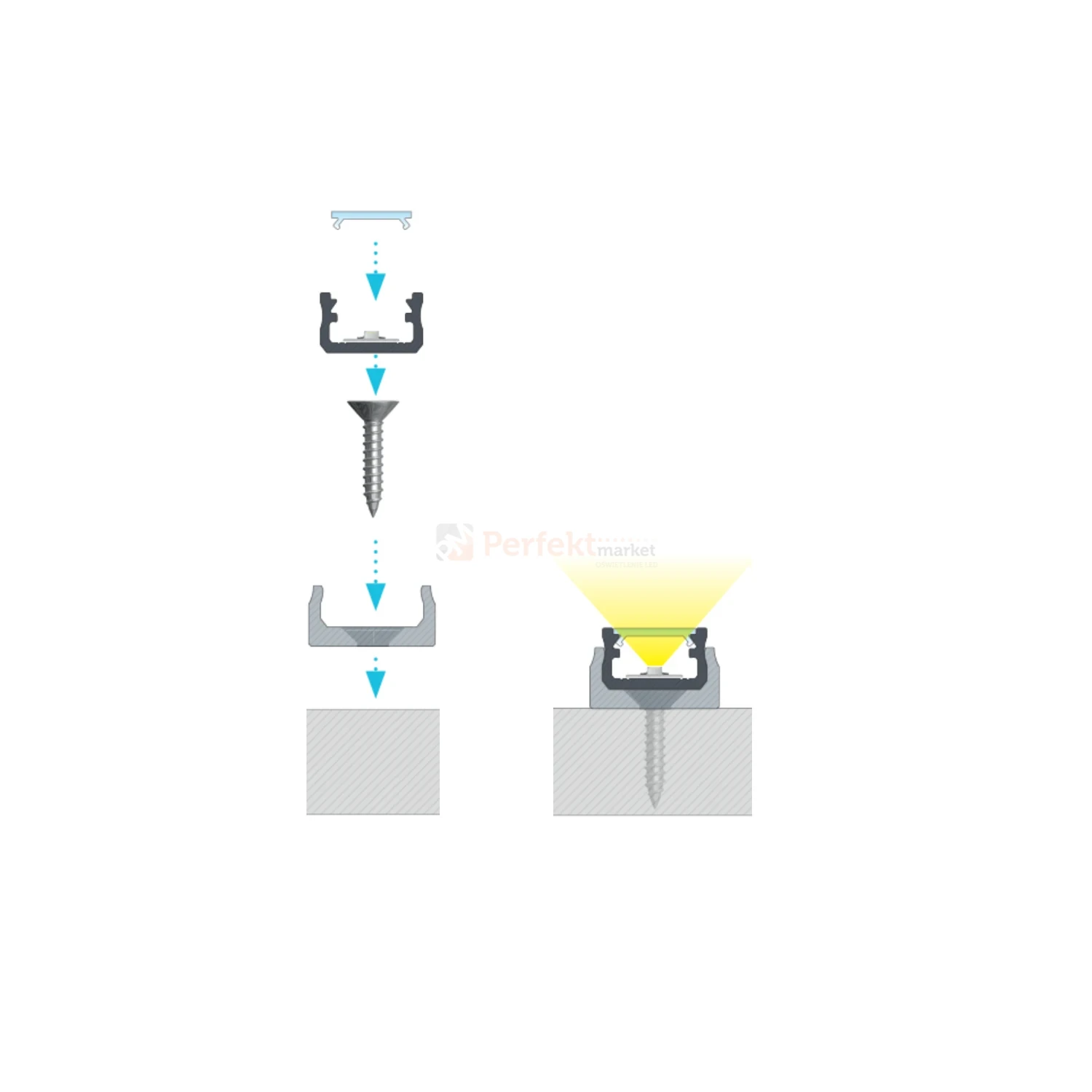 - Metoda instalacji: na wkręt do podłoża, na wcisk do profilu