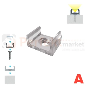 Uchwyt montażowy w wersji mini do profilu typ A zapewnia szybki montaż listy LED do półek, szafek, ścian.