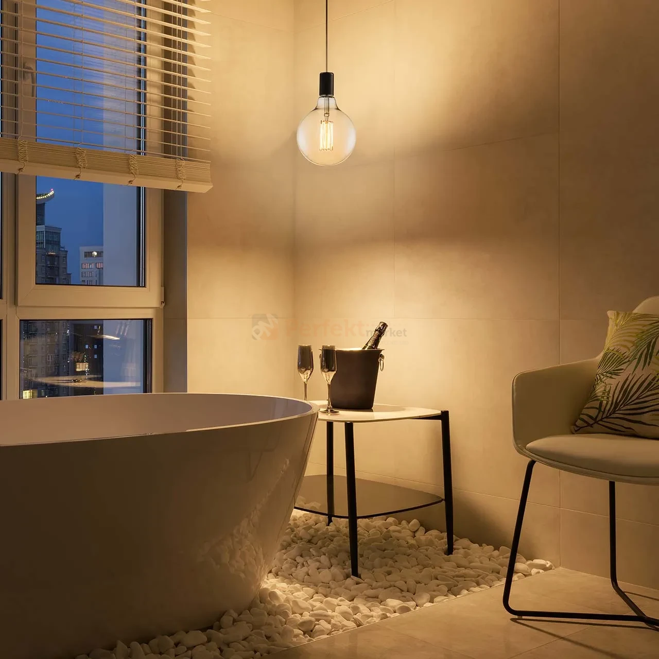 Żarówka o dużej średnicy aż 95 mm. Idealna jako widoczne oświetlenie dekoracyjne w domach, lokalach, pubach, restauracjach.