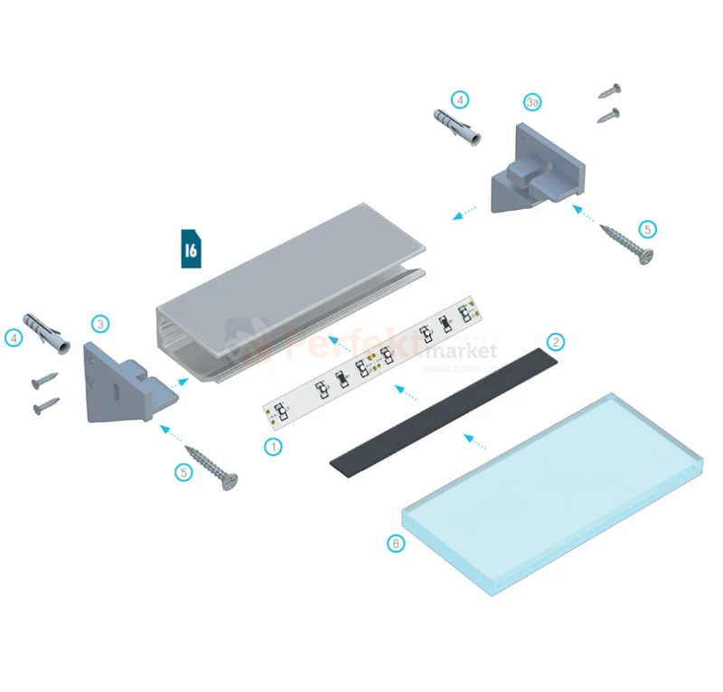 Zaślepki z podporą do aluminiowych profili LED I6 wykonane z aluminium. Wersja do szyby 6mm
