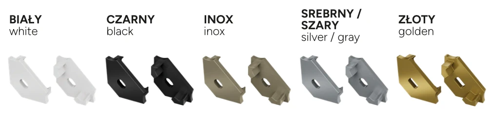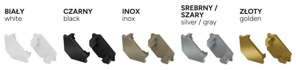 - Kolor zaślepki: szary, biały, czarny, srebrny lakierowany, inox, złoty