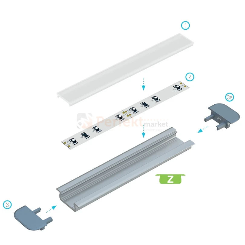 Zaślepka kończąca dedykowana do profilu aluminiowego typ Z. Dzięki zaślepce estetycznie wykończymy profil oraz wprowadzimy do niego przewód zasilający.