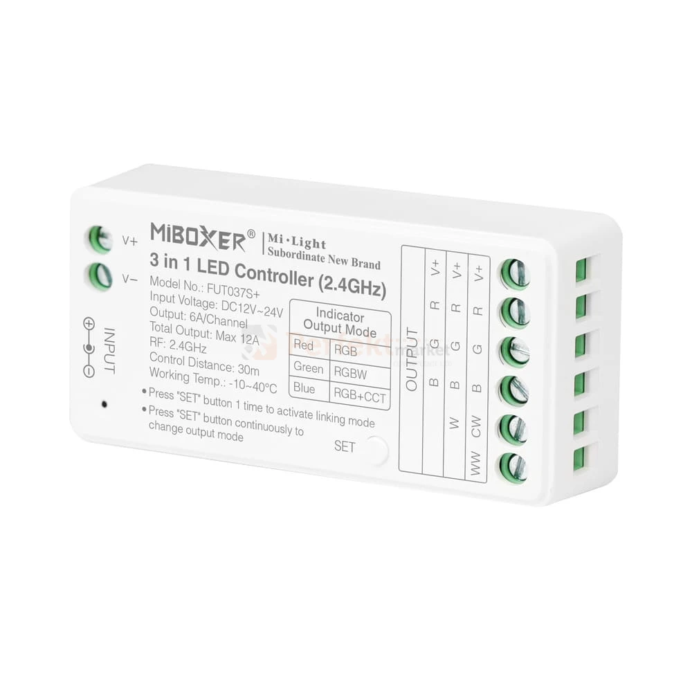 Najnowsza wersja odbiornika marki MiBOXER FUT037S+ pozwalająca na sterowanie taśmami LED RGB+RGBW, RGB+CCT.