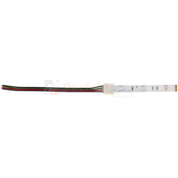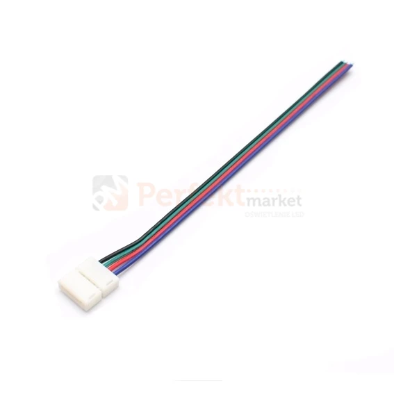 Złączka do taśm LED RGB 10 mm o mocnym i wygodnym zacisku z przewodem do podłączenia pod kontroler RGB.