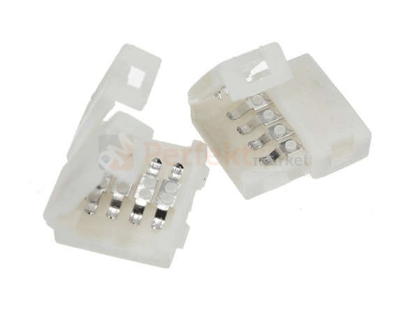 Złączka prosta służąca do łączenia dwóch odcinków taśmy LED RGB (wielokolorowych) 10 mm. Dzięki złączce uzyskamy szybkie połączenie listwy LED RGB bez konieczności jej lutowania. Złączka pasuje do taśm RGB SMD 5050 4PIN o szerokości 10 mm.